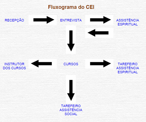 Enquanto o organograma é o quadro geométrico representativo das unidades de uma organização ou serviço e indica os limites das atribuições de cada uma delas, o fluxograma é a representação gráfica de seqüência de operações. O nosso gráfico mostra que o indivíduo começaria pela Recepção e faria hipoteticamente todas as seqüências das setas indicativas.
